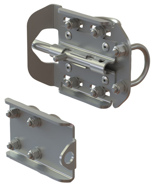 RZ Swing Gate is uniquely designed with a built-in hinge allowing easy gate placement into guardrail base like a standard safety rail. Gates may be used with a roof hatch, skylight, fire vent and floor door protection. Each RZ Guardrail swing gate comes with latch, wheel and lock bracket kit. Minor assembly required.